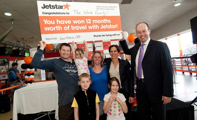 The 100 millionth passenger was awarded a year’s worth of Jetstar travel, while as part of the celebrations the airline is running competitions on Facebook and giving away Jetstar flights worth more than $100,000.