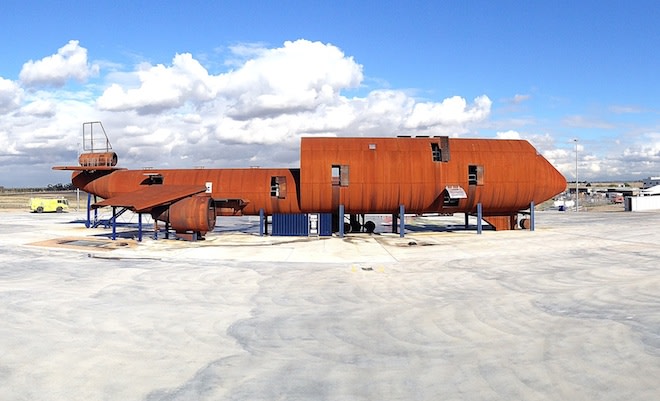 The centrepiece of the Learning Academy Hot Fire Training Ground is a full-size mock-up of an aircraft fuselage designed as a hybrid replica of the Airbus A380 and Boeing 767.