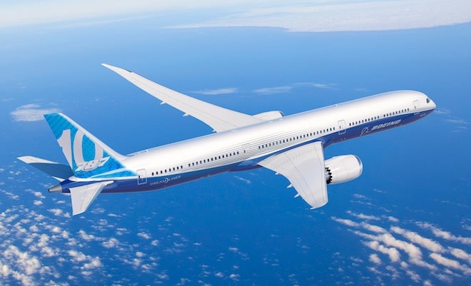 The new 787-10 will fly up to 7,000nm (12,964km) with seating for 300-330 passengers.