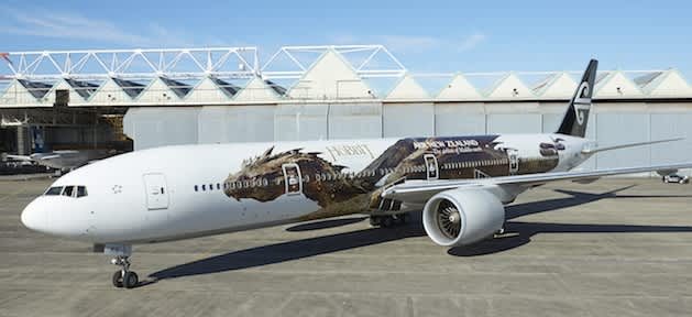 Air New Zealand has unveiled a new Hobbit themed promotional scheme on one of its 777-300ERs as part of its sponsorship of the latest made-in-New Zealand film in the Hobbit movie franchise.