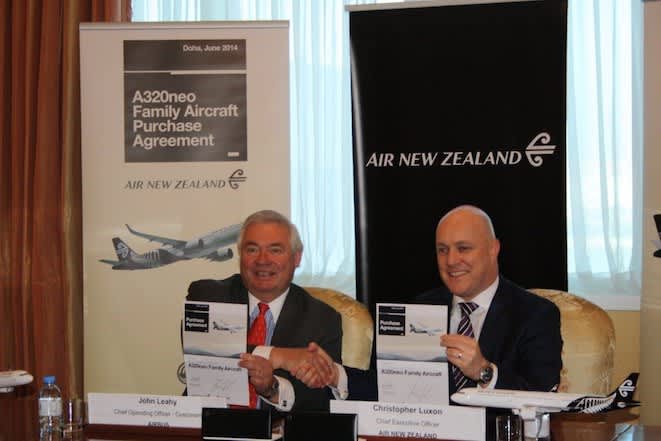 The order for 13 A320neos plus a single standard A320 to join the airline’s domestic fleet was announced by Air New Zealand CEO Christopher Luxon during IATA’s annual general meeting currently being held in Qatar.