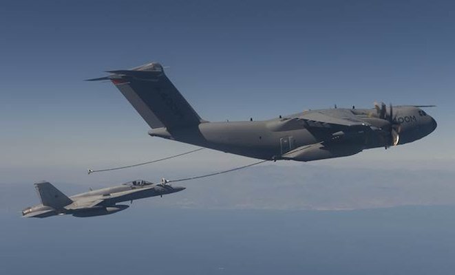 Airbus says the A400M airlifter has successfully demonstrated its air-to-air refuelling capabilities. During a recent flight test campaign, a Spanish air force F/A-18 Hornet made 33 dry and 35 wet contacts with an A400M development aircraft. During the wet contacts 18.6 tonnes of fuel was transferred to the Hornet.