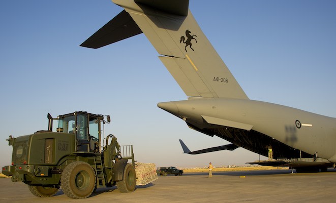 RAAF C-17 A41-208 is unloaded at Erbil, Iraq. (Defence)