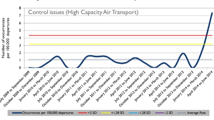 While these were typically low frequency incidents, aircraft control issues have been on the rise from January to June 2014, the ATSB report said.