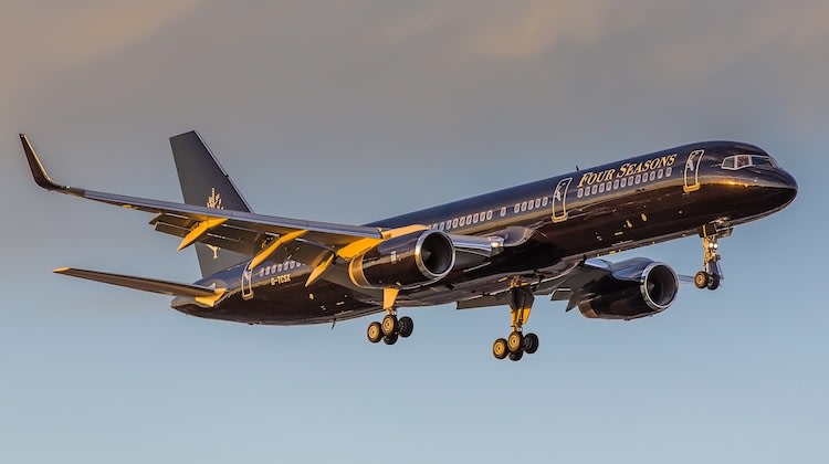 The British registered 757, G-TCSX, is part of TAG Aviation’s charter and private jet fleet and has been leased to the Four Seasons and features the hotel group’s livery on the fuselage and logo on the tail.