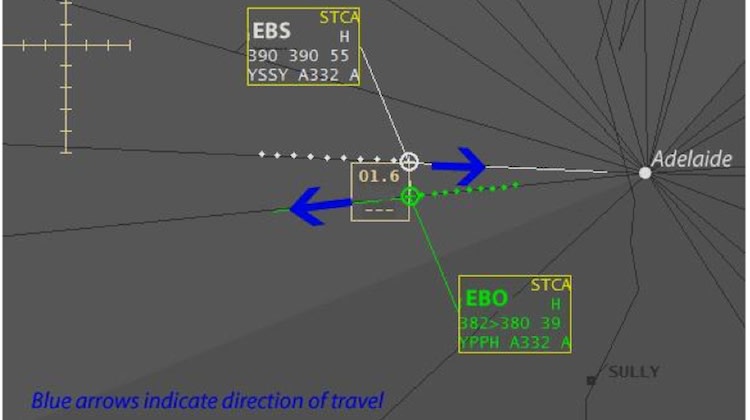 The incident on September 20 2013 involved VH-EBS operating from Perth to Sydney and VH-EBO flying westwards from Sydney to Perth.