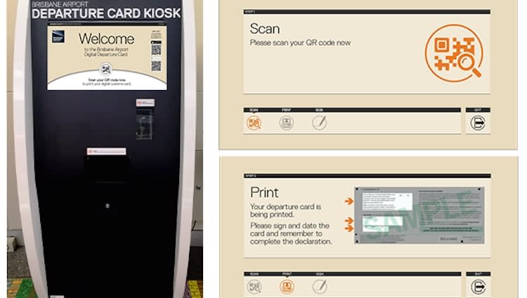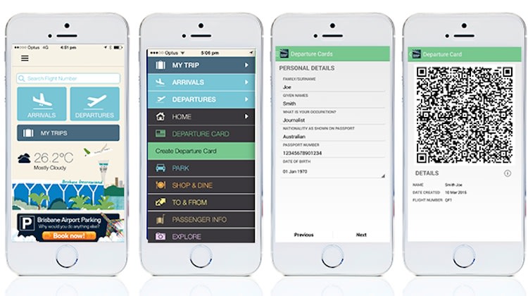 Instead of hand writing their personal information on the paper cards, travellers heading out of Australia can enter the details on Brisbane Airport’s mobile app, which is converted to a QR code.