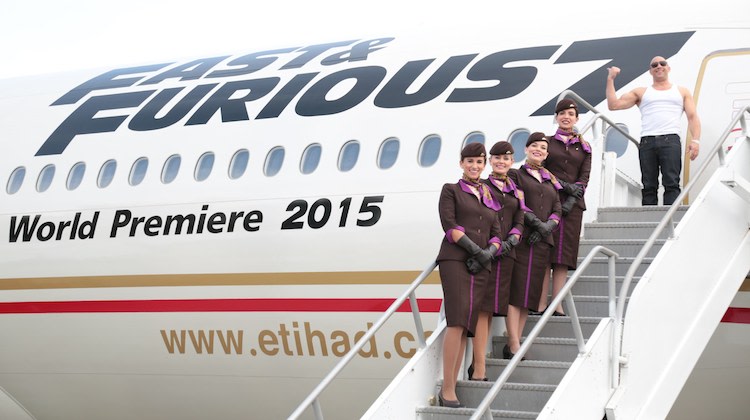 Fast & Furious 7, which features scenes shot on location in Abu Dhabi, hits cinema screens on April 3 and the decal will remain on the aircraft for the next four to six months, Etihad said in a statement on Friday.