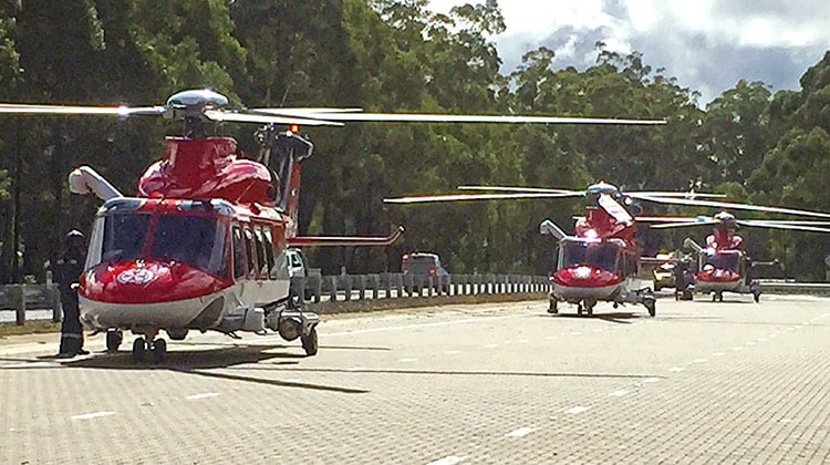 This response is understood to have been the first time Greater Sydney Area HEMS, which covers Wollongong, Sydney and Orange, has tasked three of its EMS helicopters to the same incident.