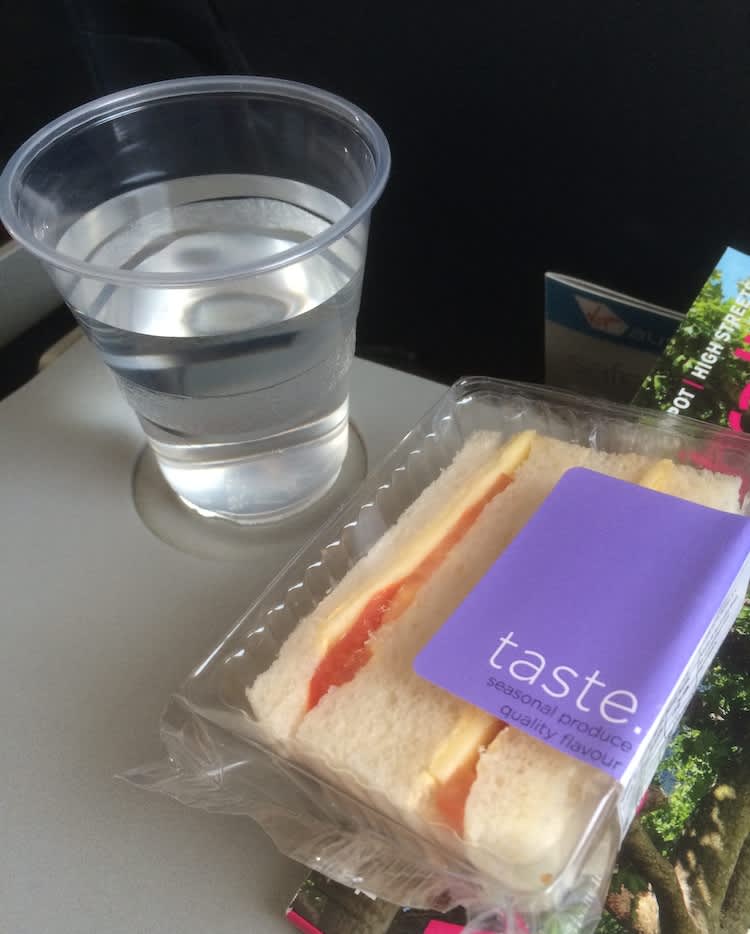 For example, those travelling between Sydney and the Gold Coast are able to chew on some cheese and crackers or a half sandwich, while passengers on Melbourne-Gold Coast had to make do with tea, coffee, juice or water, or something stronger during the 5-7pm “happy hour”, unless they bought something from the retail cart.