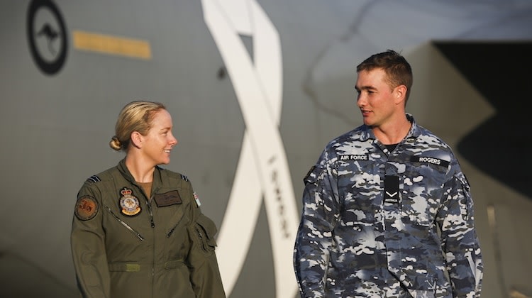 The Royal Australian Air Force (RAAF) has thrown its support behind White Ribbon Night with a spectacular flypast of a C-17 Globemaster.