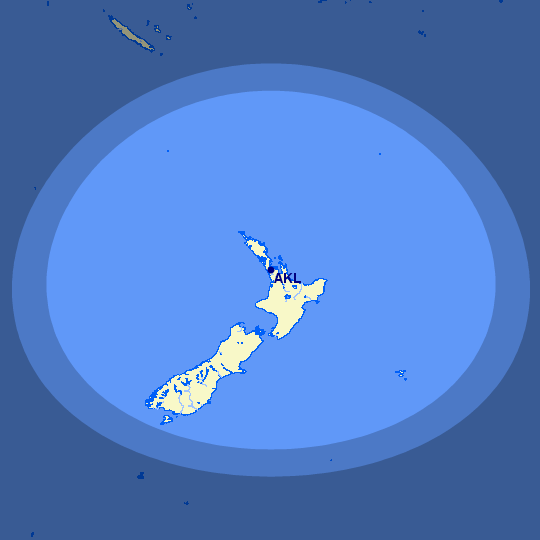 In practical terms, however, the 109nm increase in range of the ATR 72-600 (825nm) over the -500 model (716 nm) is unlikely to make a significant difference to Air NZ, as this map drawing the two range circles from Auckland shows. (Map generated by the Great Circle Mapper at gcmap.com.) Yet if Air NZ did want to operate turboprop aircraft in strong Roaring Forties headwinds between, say, Auckland and Invercargill at the southern tip of the South Island, the additional range could prove useful.