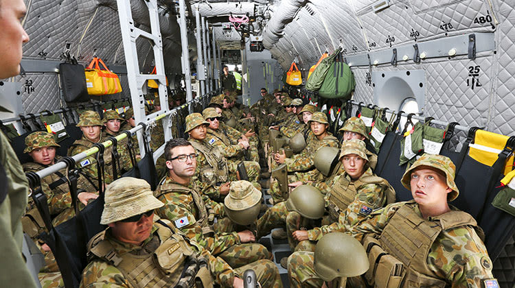 3rd Brigade troops try on the C-27J for size. (Defence)