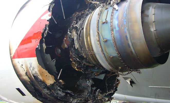 Investigators found the failure was a due to a fatigue crack in an oil feed-pipe in the number two Rolls-Royce Trent 900 engine of the aircraft. This led to an internal oil leak and fire, with the turbine disc eventually bursting through the engine casing.