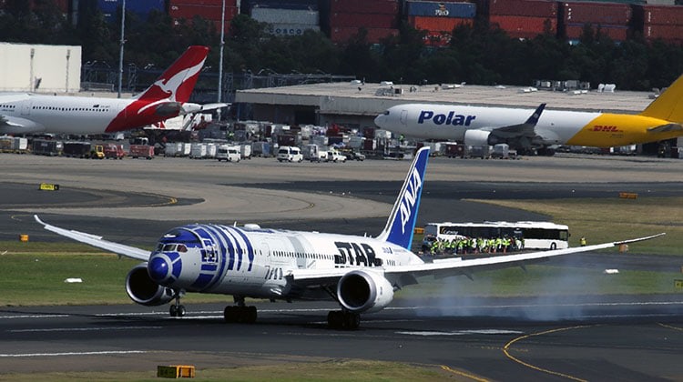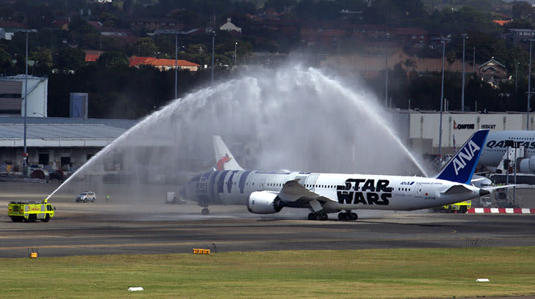 ANA has used its its Star Wars-themed Boeing 787-9 Dreamliner for its inaugural flight from Tokyo/Haneda to Sydney, with flight NH879 touching down at 0932 local time Saturday morning.