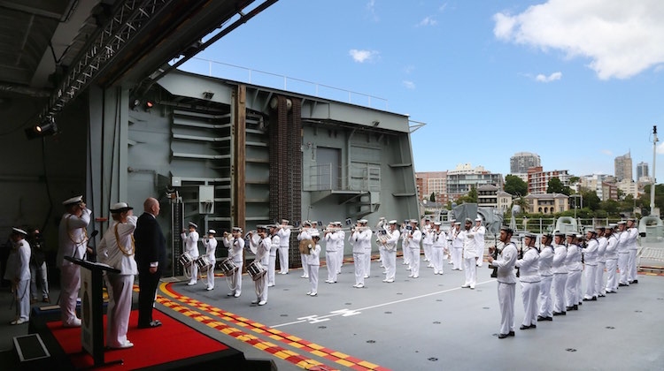 Governor-General Sir Peter Cosgrove, Minister for Defence Senator Marise Payne and Chief of Navy Vice Admiral Tim Barrett attended the ceremony, which was held on the aircraft hangar deck.