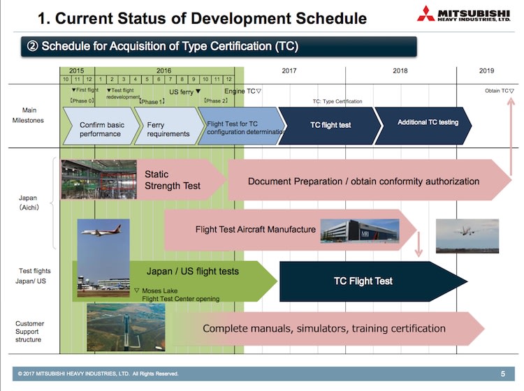 “We will continue with ongoing flight test program with current test aircraft configuration and obtain certification flight test data of performance, flight characteristics for type certificate,” Mitsubishi said.