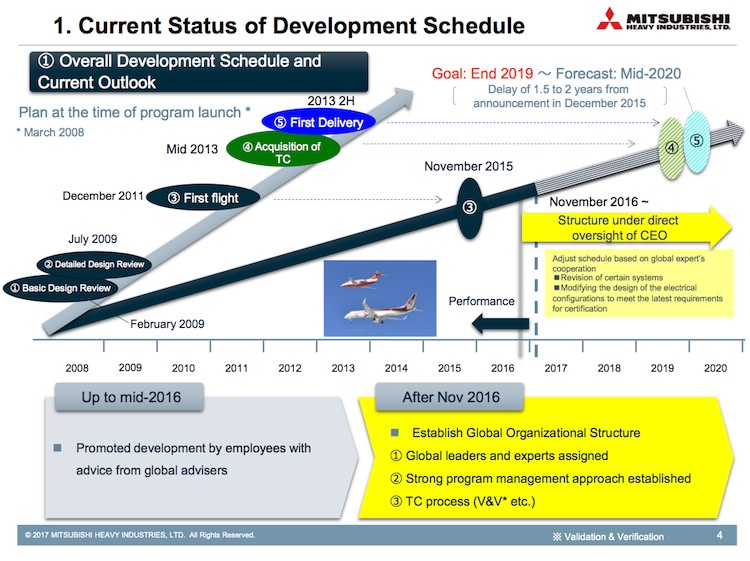 Mitsubishi said type certification for the aircraft was scheduled for 2019. Greater use of foreign experts would help fast-track the development of the MRJ, while a recently established business promotion committee chaired by Mitsubishi Heavy Industries (MHI) president and chief executive Shunichi Miyanaga would “oversee the continued development and long-term business performance of the MRJ”.