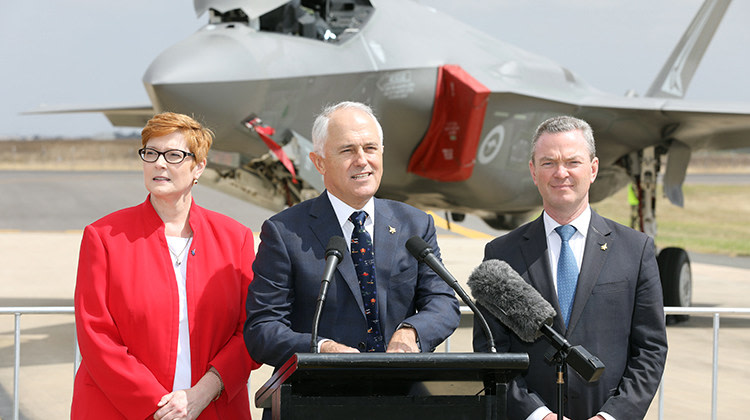 After watching the arrival of Australia’s first two F-35 aircraft, Turnbull faced the press, saying right now the RAAF was in the Middle East on combat operations.