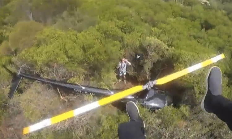 Landing upright in very dense scrub with the engine and rotor still turning, Butler shut down the helicopter and used a mobile phone to call rescue services.