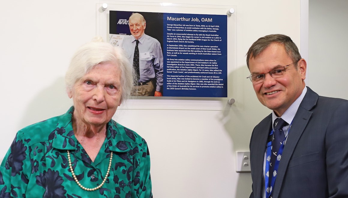 The Australian Transport Safety Bureau has honoured highly-regarded aviation author Macarthur Job by dedicating its new media studio in his honour.