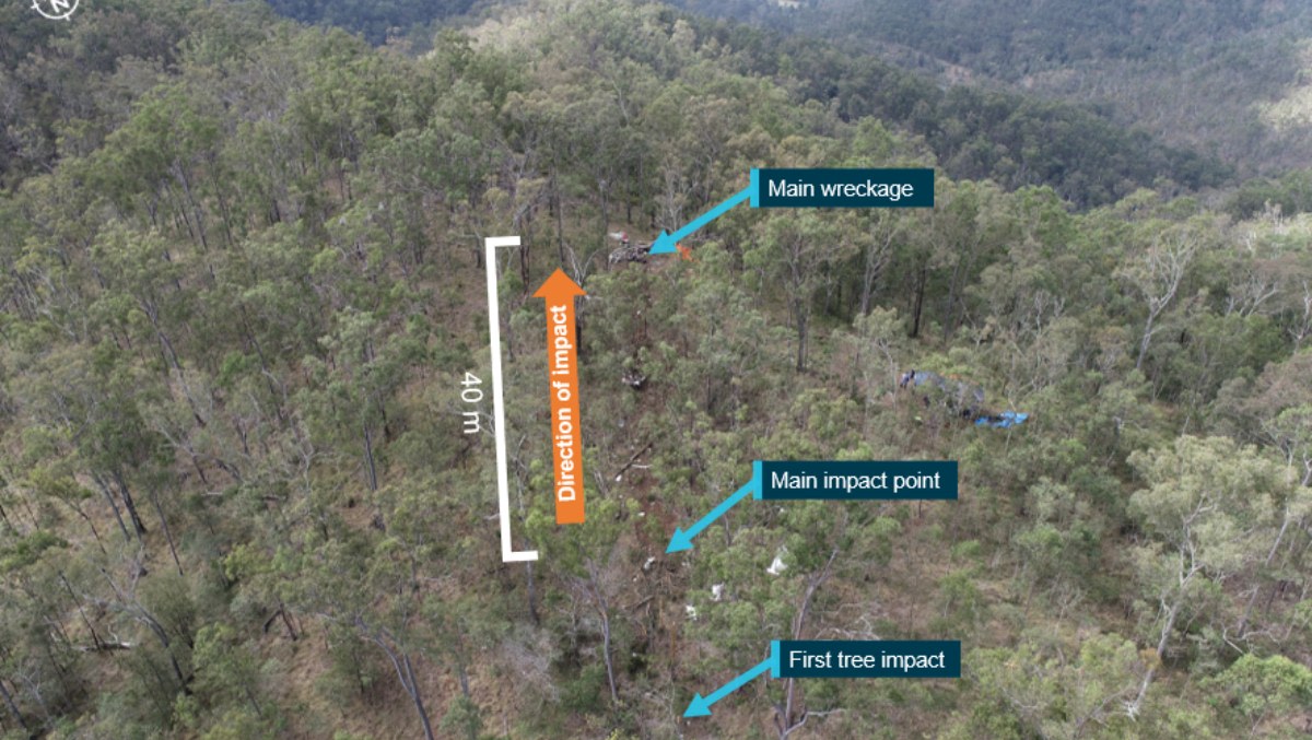 When the aircraft did not arrive as expected, a search was co-ordinated by Airservices Australia and the Australian Maritime Safety Authority. The wreckage was located later that afternoon within the D’Aguilar Range on a steep section of wooded mountainous terrain. The aircraft was destroyed and all occupants were killed.